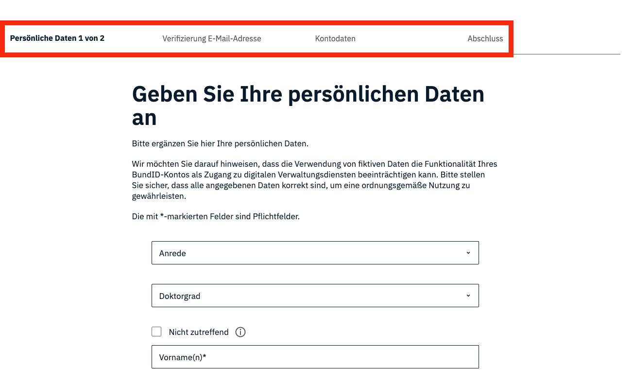 - Geben Sie Ihre persönlichen Daten ein und durchlaufen Sie die vier Schritte zur Registrierung