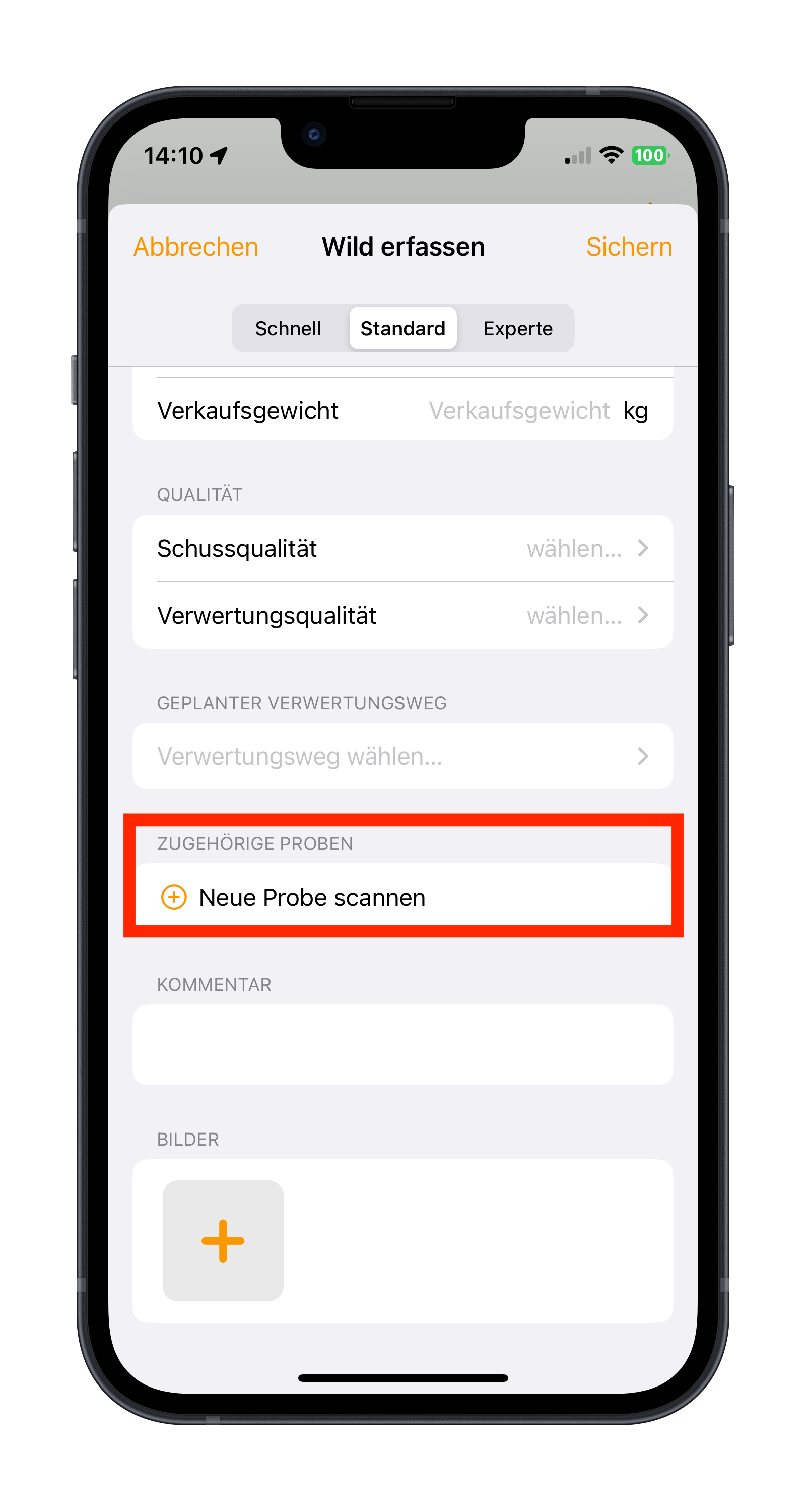 Mit der Funktion "Neue Probe Scannen" können Sie schnell und unkompliziert Proben, wie zum Beispiel Trichinen- oder ASP-Proben, zu einem Wildstück erfassen und dokumentieren. Eine Schritt-für-Schritt Anleitung wie die Digitale Übermittlung funktioniert finden Sie im Artikel "Wie übermittel ich Anträge an das Veterinäramt?"