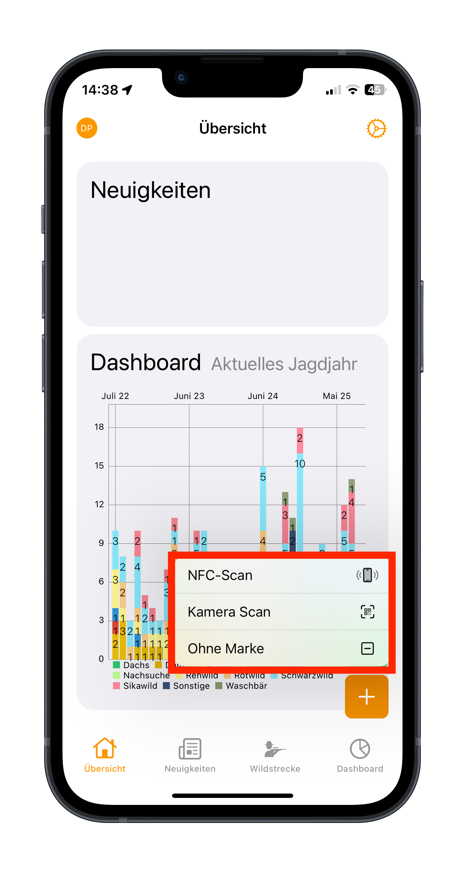 In den diwima Apps können für die Erfassung von Wildstücken digitale Wildmarken verwenden, die einen Barcode, QR-Code oder NFC-Chip tragen. Darüberhinaus ist es auch möglich, Wildstücke zu erfassen ohne eine Wildmarke zu verwenden. Die einzelnen Vorgehensweisen sind im Artikel "Welche Erfassungsmöglichkeiten gibt es?" ausführlich beschrieben.