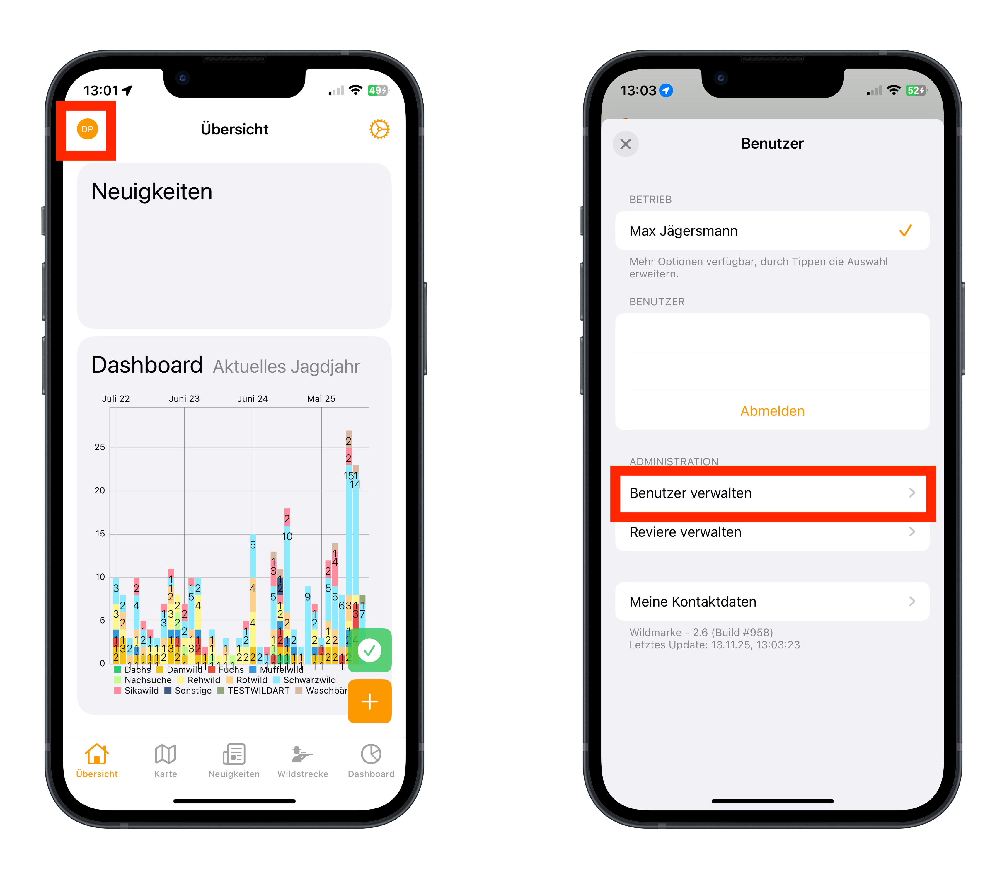 👉 In diesem Artikel zeigen wir Ihnen Schritt-für-Schritt wie Sie in der Diwima Wildmarke App Benutzer anlegen und verwalten. So arbeiten Sie gemeinsam mit Ihren Mitjägern in Ihren Revieren in einer Streckenliste.