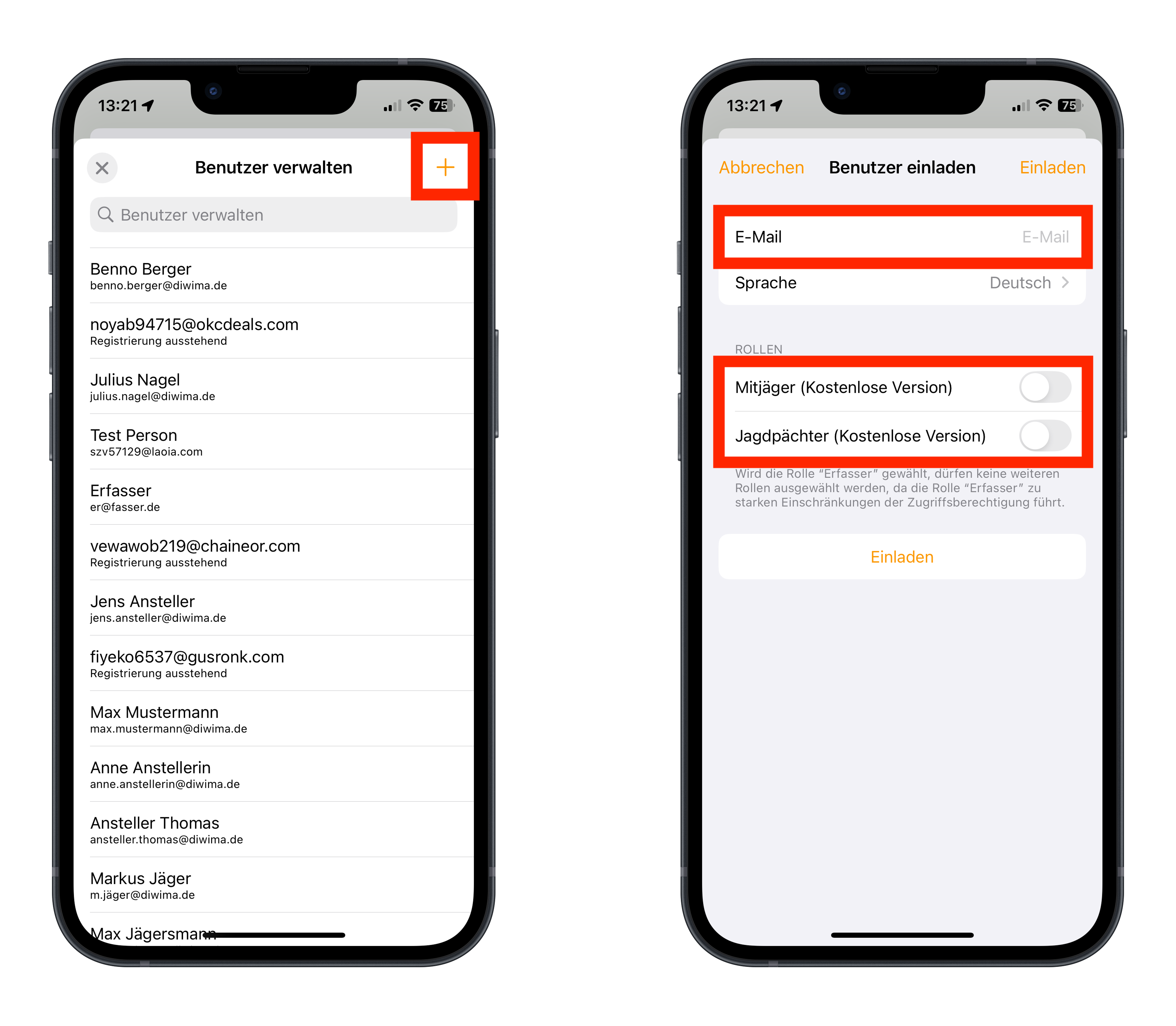 👉 In diesem Artikel zeigen wir Ihnen Schritt-für-Schritt wie Sie in der Diwima Wildmarke App Benutzer anlegen und verwalten. So arbeiten Sie gemeinsam mit Ihren Mitjägern in Ihren Revieren in einer S…