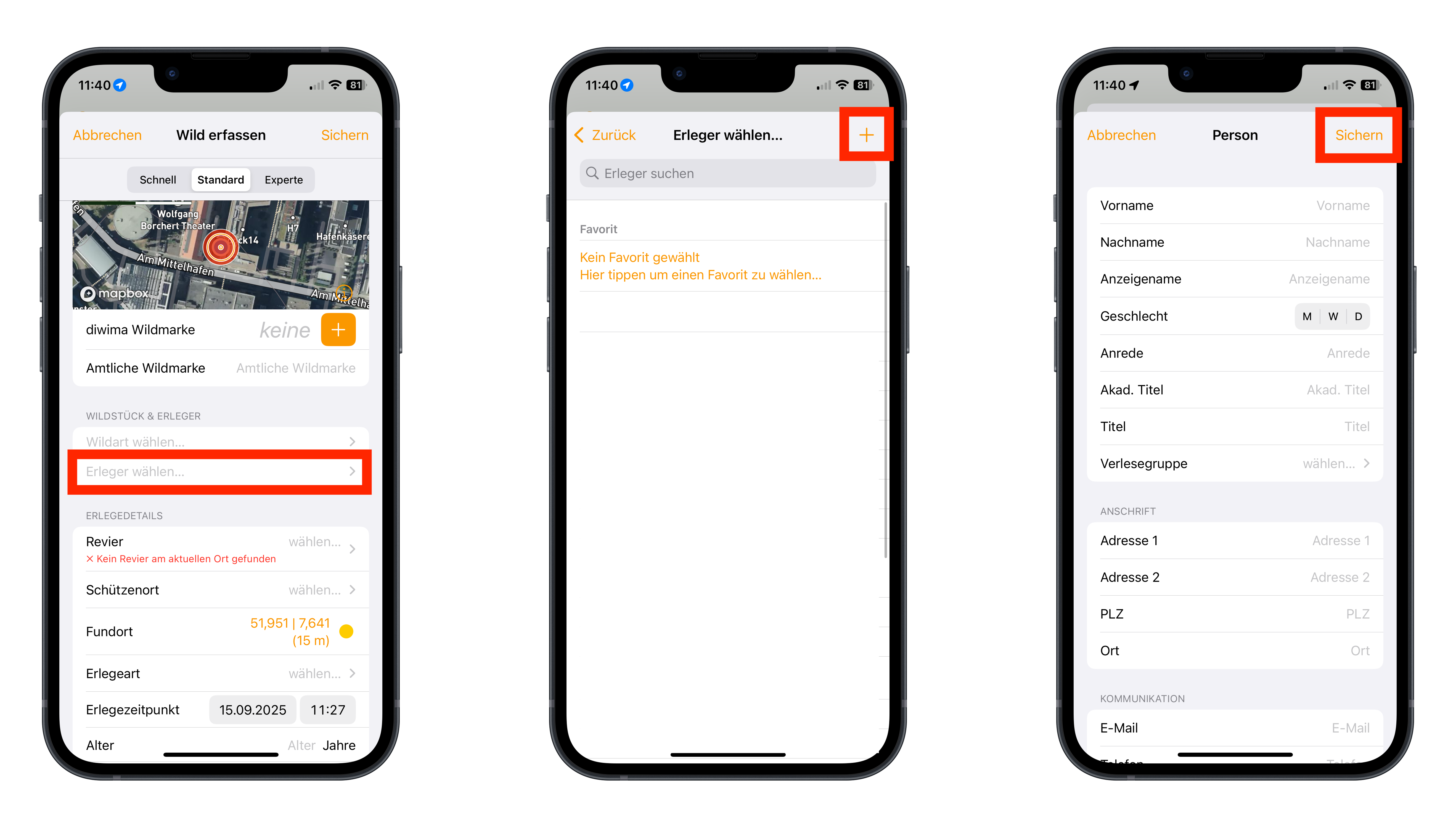 Sie haben ebenfalls die Möglichkeit Personen direkt im Wild erfassen Formular hinzuzufügen.