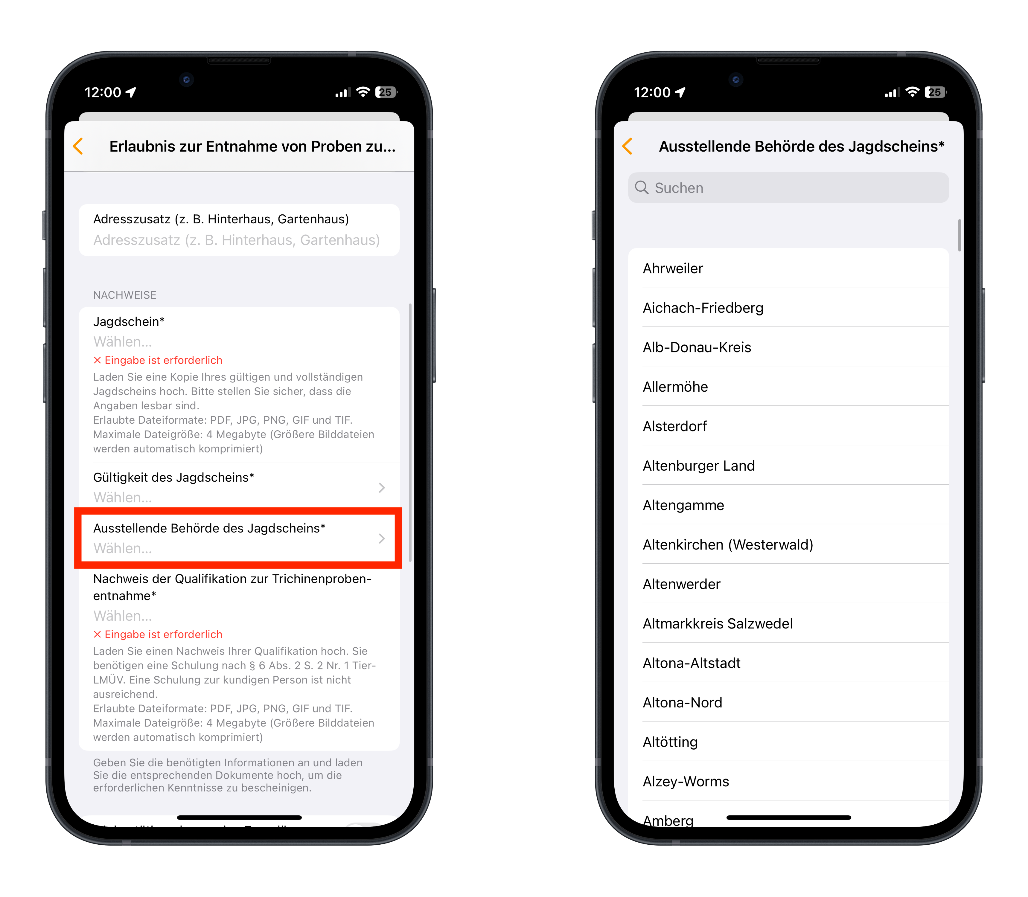 👉 In diesem Artikel zeigen wir Ihnen Schritt-für-Schritt, wie Sie das OZG-Formular zur Erlaubnis zur Entnahme von Proben zur Trichinenuntersuchung beantragen und richtig nutzen. Mit diesem Formular beantragen Sie die eigenständige Entnahme von Proben, um diese zur amtlichen Untersuchung einzureichen. Voraussetzung hierfür sind ein Jahresjagdschein und ein entsprechender Nachweis über die absolvierte Schulung.